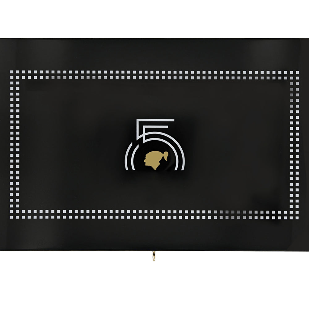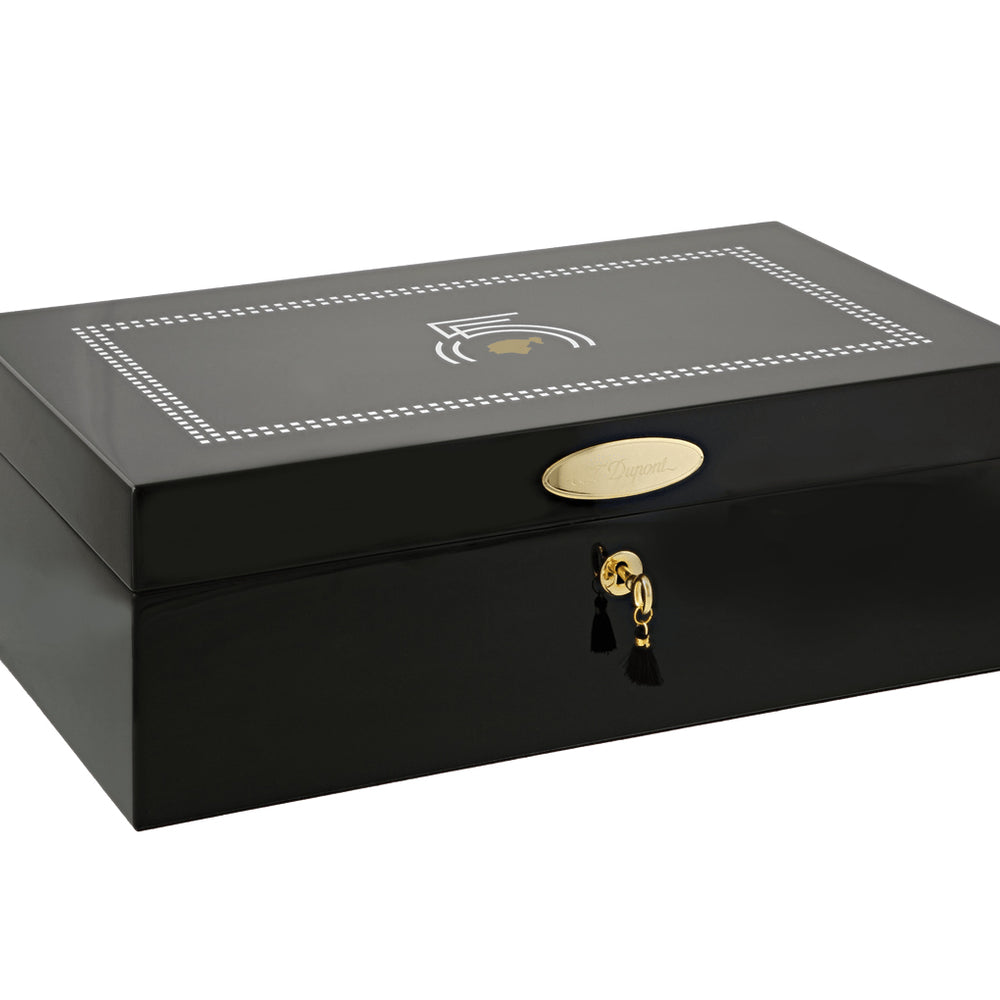 A true collector’s piece, the S.T. Dupont Cohiba 55th Anniversary Humidor pays tribute to Cohiba's legacy with exceptional craftsmanship and design. Made from fine bossé wood and finished in deep black lacquer, it features the iconic Cohiba Indian head and “55” anniversary logo in gold and white accents across the lid.